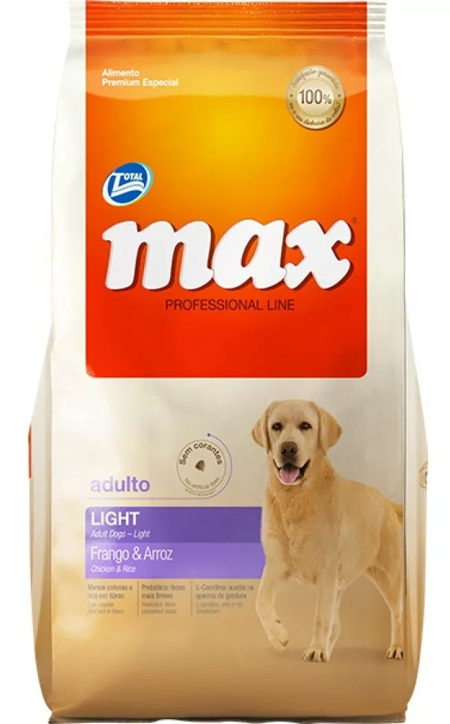 El control y la prevención de la obesidad son fundamentales para el bienestar y la salud de los perros. Max Light Pollo & Arroz, es un alimento Premium Especial, cuidadosamente elaborado para el control del peso en perros adultos. Su formulación posee el equilibrio ideal de fibras, grasa y proteínas, conteniendo todos los nutrientes necesarios para mantener a los perros sanos y en buena forma. Además, cuenta con L-Carnitina, que ayuda en la pérdida y control del peso en perros adultos.